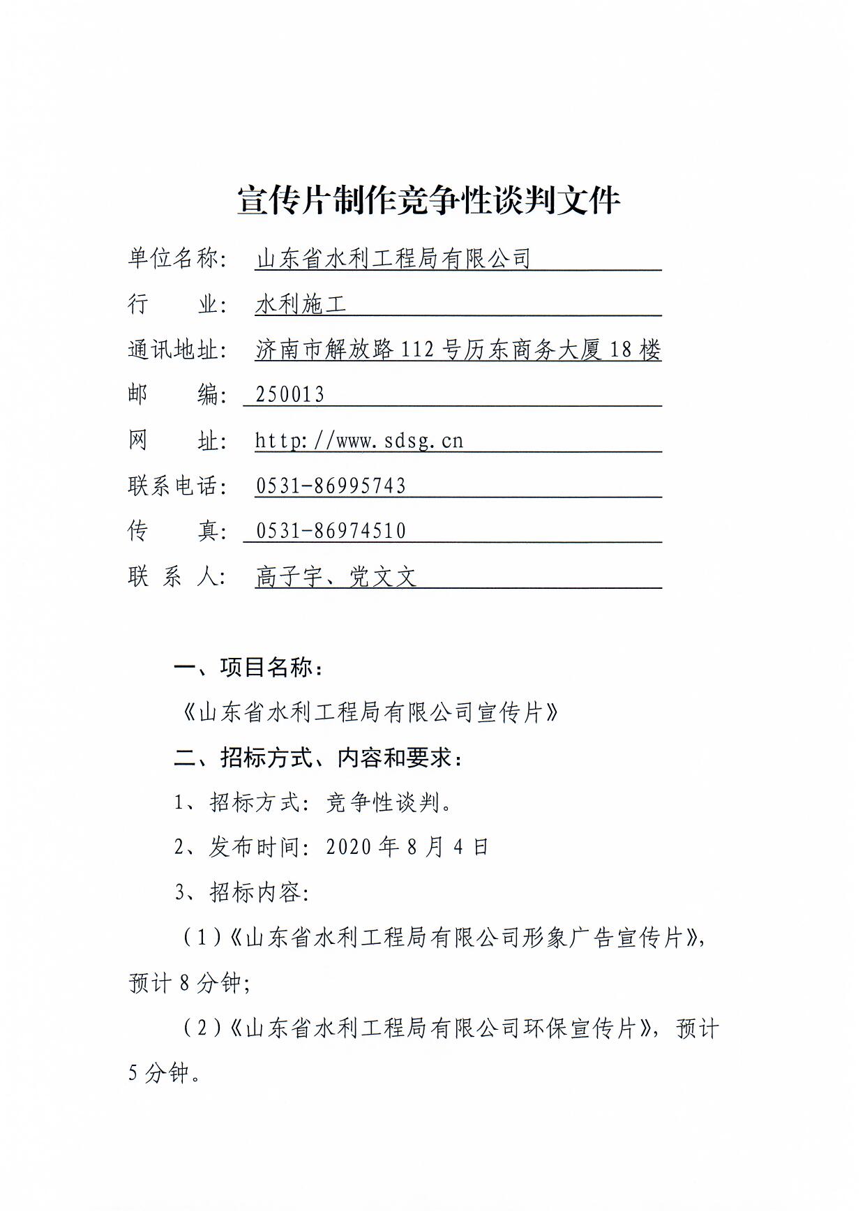 山東省水利工程局有限公司企業(yè)宣傳片制作項目競爭性談判文件