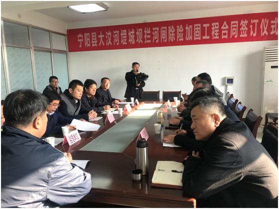 近日,寧陽縣大汶河堽城壩攔河閘除險加固工程簽約儀式在山東省泰安市寧陽縣堽城壩管理所舉行,第一工程公司經(jīng)理張金輝代表我公司出席簽約儀式。 寧陽縣水利局劉局長對各中標(biāo)單位表示了祝賀,希望各單位團結(jié)一致,加 ...