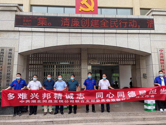 8月12日,湖北同晟龍悅公司聯(lián)合黨支部向黃梅縣大河鎮(zhèn)政府送去醫(yī)用酒精、礦泉水、方便面等抗疫物資,并組織職工投身抗疫一線,積極參與政府組織的疫情排查工作,彰顯國(guó)有企業(yè)的社會(huì)責(zé)任擔(dān)當(dāng)。
